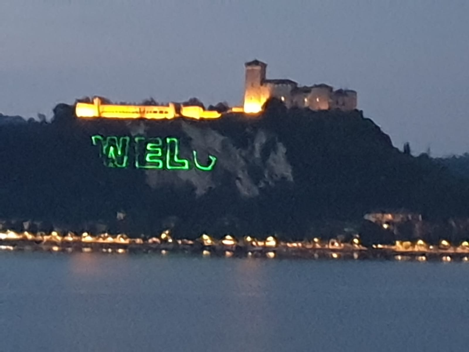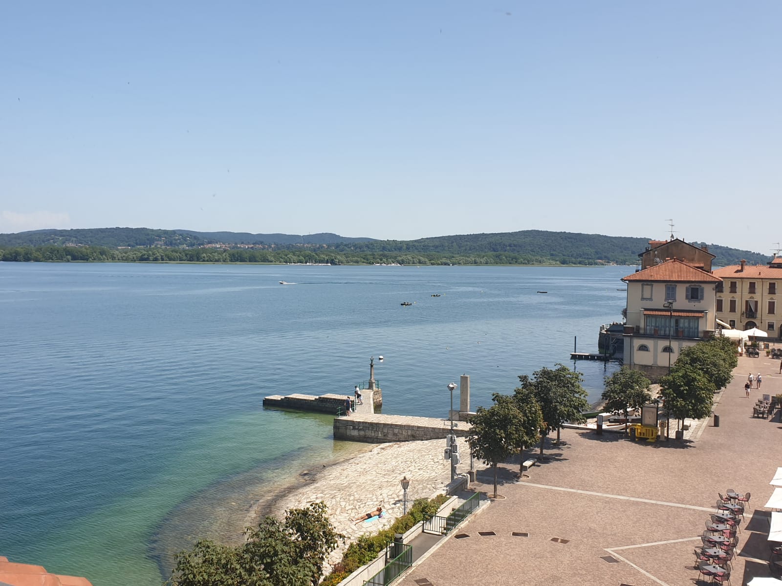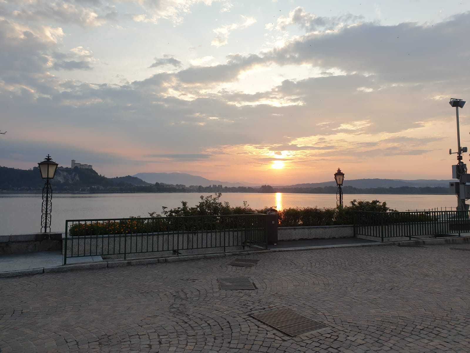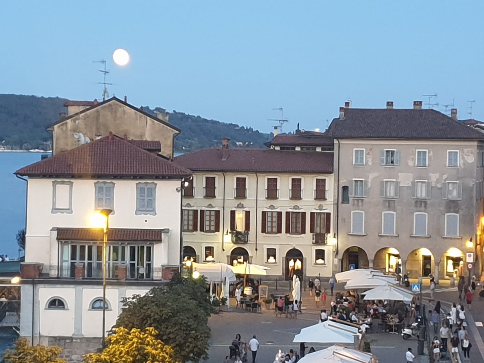 Romantico bilocale con camera matrimoniale, balcone sulla piazza più bella di Arona, bagno con doccia. Soggiorno con divano letto e cucina a vista attrezzata.